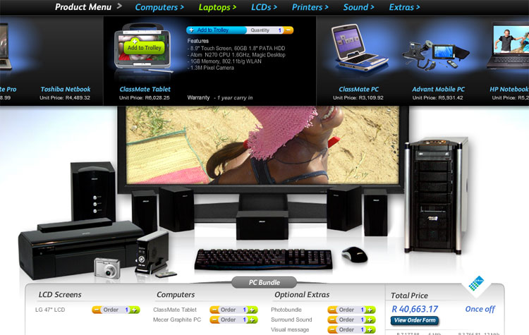 Build your own PC Bundle from a visual list of Telkom products – choose your PC, add a 47in LCD, a laptop or two and much more.