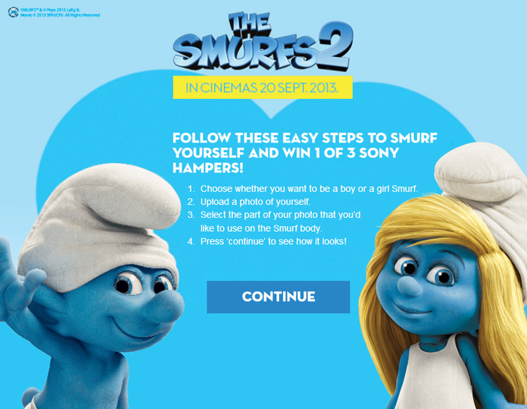 The Smurfs2 movie has just come onto the South African cinema circuit and my client wanted to design an online competition around this. “Carl, we need a promotional micro-site where people can upload images and ‘Smurfify’ them – is this possible?”.