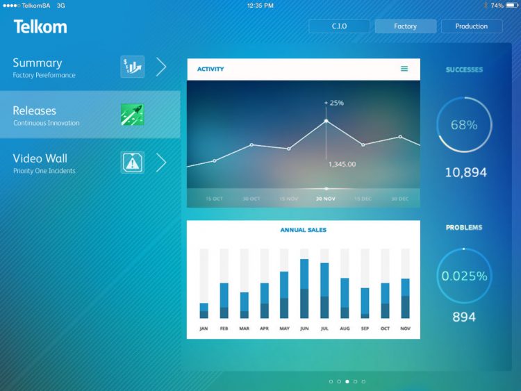 I had the privilege of being tasked with the design of the Telkom CIO Dashboard iPad app.